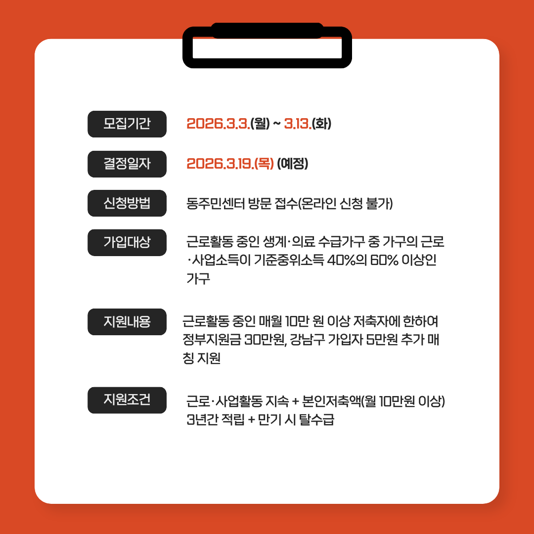 ✔ 지원조건 : 근로활동 유지 + 본인저축 월 10만 원 이상 (3년 적립)