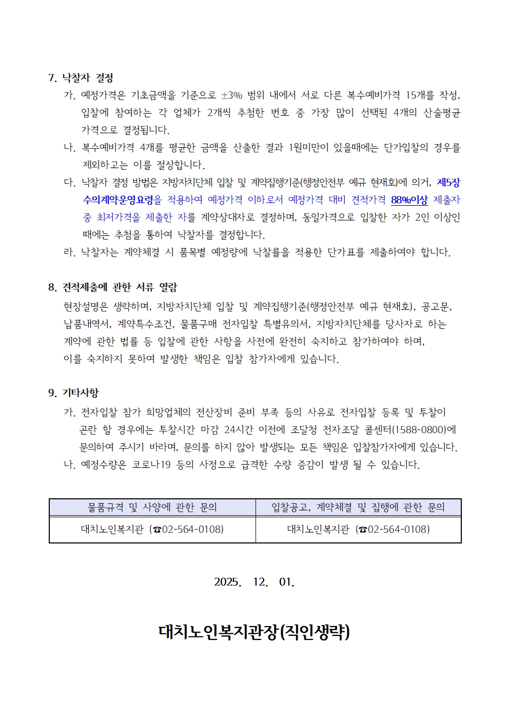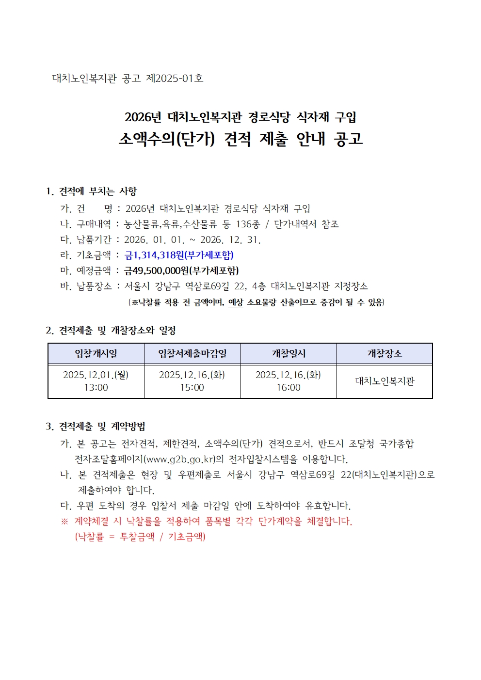 [공고]2026년 대치노인복지관 식자재 납품업체 공고