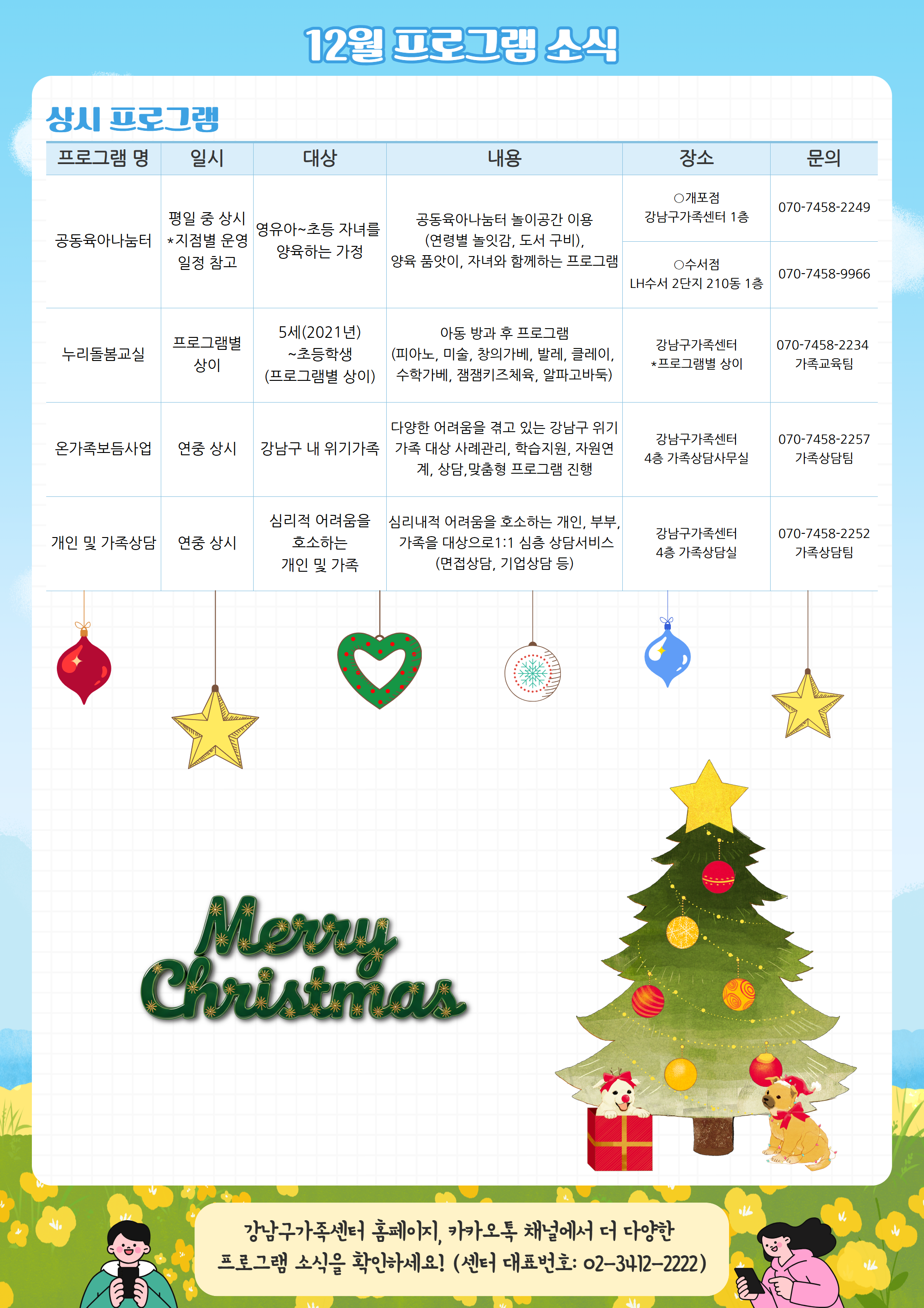 [강남구가족센터]2025년 12월 주요행사 및 프로그램 안내
