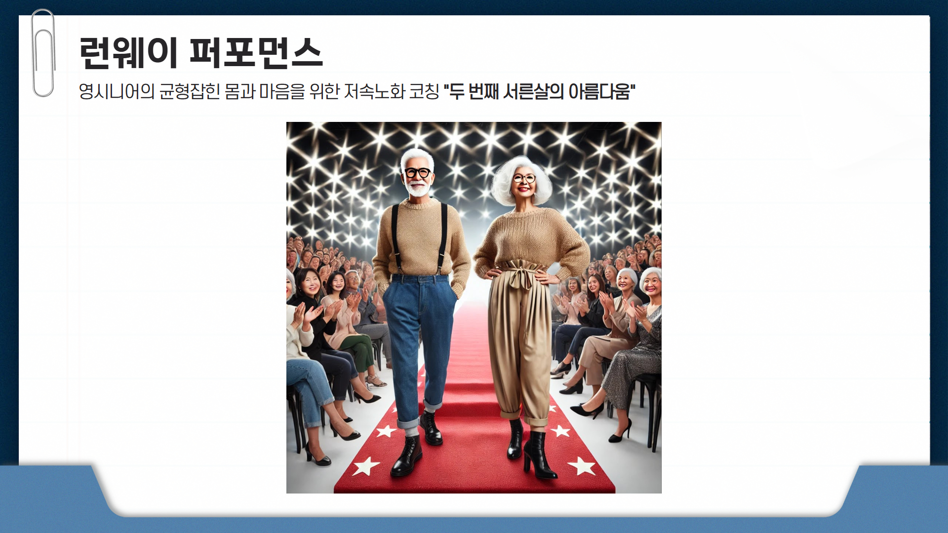 런웨이 퍼포먼스, 현황보고, 저속노화 노하우 발표 순으로 진행되어 그간의 성장과 변화를 공유하는 뜻깊은 시간이었습니다.