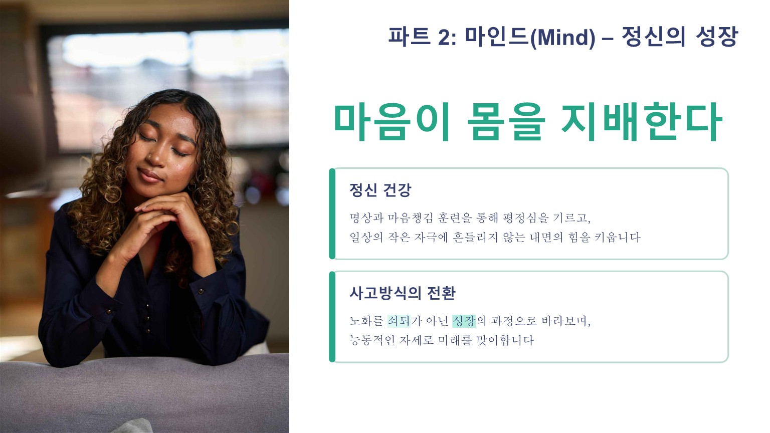 매 회기마다 의미 있는 시간이었습니다.”, “새로운 배움의 즐거움과 건강한 습관을 실천할 용기를 얻었습니다.” 등의 소감을 남겨주었습니다.
