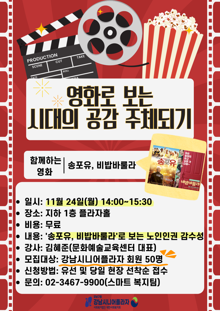 [스마트복지] 11월 노인인권 특강 영화로 보는 시대의 공감 주체되기 참여자 모집